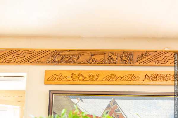 30. Корабли украшают вот такими досками, на которых резчик наносит целую историю. Вот рыбаки отправляются на рыбалку.