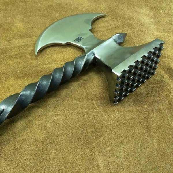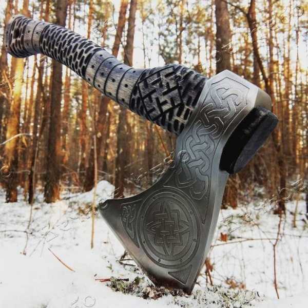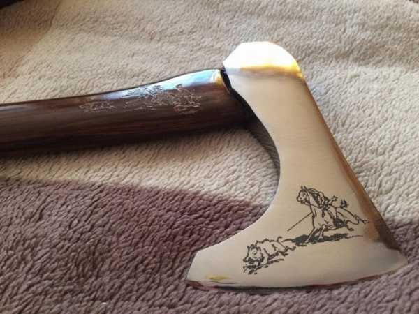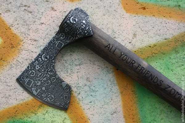 Боевой топор с гравировкой –коллажем и прямой рукоятью.