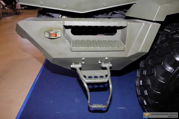 05. Начинаем М-Парк Осмотр. С первого взгляда кажется, что разрабатывалась машина с умом (и с оглядкой на лучшие образцы). На бампере сложной формы две дополнительные ступеньки, одна откидная, другая на гибком подвесе — грамотное решение. Основные в виде решеток для лучшего сцепления — тоже правильно.