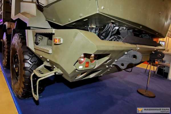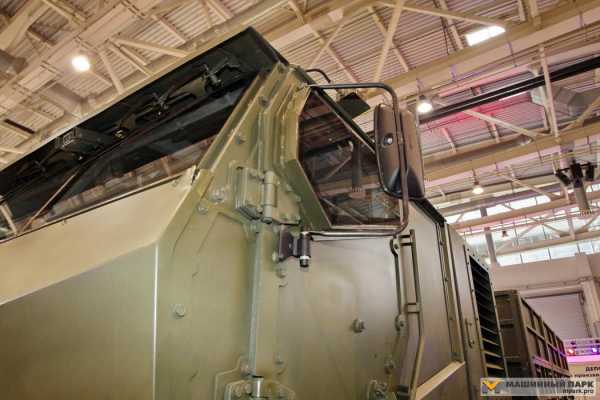 01. Стояла машина в углу павильона, ее кабину не открывали, и не поднимали. Тем не менее, даже оглядев ее по периметру, кое-что можно было понять. Как выглядит машина семейства «Тайфун«, уже известно, они успели принять участие в параде Победы. Бескапотная компоновка, хищная угловатая кабина, большие внедорожные шины… А эта платформа называется «Торнадо«.