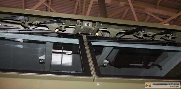 10. Над лобовым стеклом в защитной нише располагается видеокамера. Вероятно, ее должны будут заменить прибором ночного видения. А внутри кабины из плафона кокетливо выглядывают хвосты оторванной проводки…