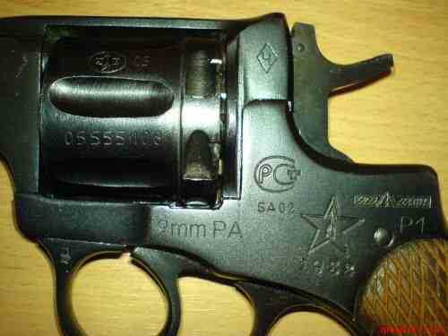 Изменения претерпел и барабан оружия, в каморах которого так же появились препятствия для резиновых пуль. На этом можно сказать, что работа по переделке оружия закончилась, больше с оружием никаких изменений не производили, хотя и этого было более чем достаточно. Интересным моментом в оружии было то, что на рамке сохранились практически все пометки и клемма, говорящие о том, какой путь оружие прошло. Тем не менее, в первую очередь этот револьвер является средством самообороны и вот тут как раз оружие несколько неудачное.