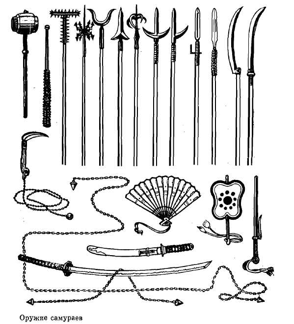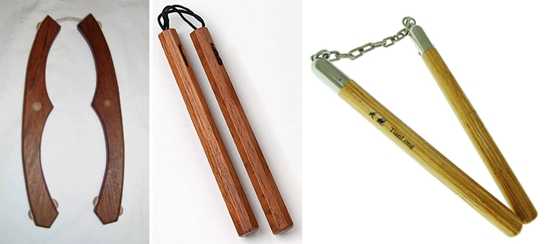 Нунчаки стали одним из видов такого оружия. Но они были не особо популярны. Воин, владевший всеми премудростями боя нунчаками мог обезоружить троих человек с ножами или кастетами, а вот если у них были мечи или длинные палки, это становилось сложнее. Их носили исключительно для самообороны, чтобы в темных переулках можно было дать отпор грабителю.