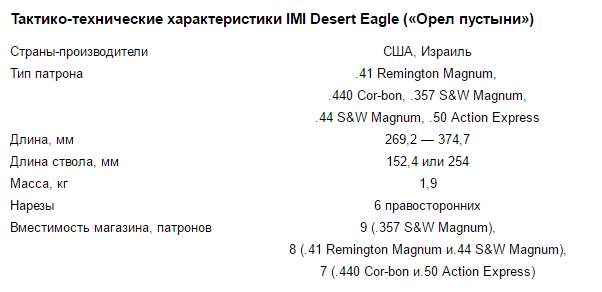 Тактико-технические характеристики «Дезерт Игл» (под патрон .357 «Магнум»)