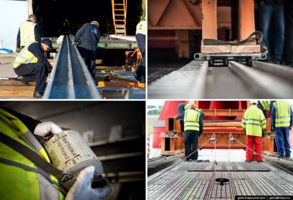 Для транспортировки колеса гидротурбины использовалось оборудование, распределяющее вес груза по полу грузовой кабины. Это как для передвижения по снегу нужны снегоступы. Также важно закрепить груз в грузовой кабине (зашвартовать). Неправильное решение этих задач чревато повреждением конструкции ВС и даже авиакатастрофой.