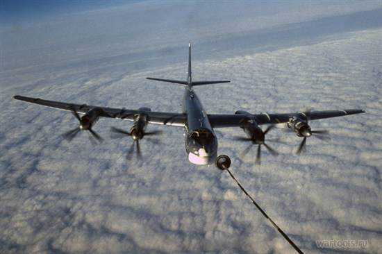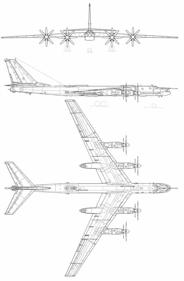 Ту-95 (проект «95», изделие «В», по кодификации НАТО: Bear — «Медведь») — советский и российский турбовинтовой стратегический бомбардировщик-ракетоносец, самый скоростной в мире самолёт с винтовыми двигателями[5] До настоящего времени единственный в мире серийный бомбардировщик и ракетоносец с турбовинтовыми двигателями. Являлся советским символом обеспечения военно-стратегического паритета[6] в холодной войне. Остается на службе как носитель крылатых ракет, в том числе самых совершенных как Х-101, благодаря более низкому расходу топлива чем у реактивных самолетов, а главное большей скрытностью от спутников SBIRS способных по выхлопу наблюдать крупные стратегические бомбардировщики на реактивных двигателях. National Interest отмечает, что довольно наивно считать Ту-95 устаревшим оружием, т.к. фактически от самолета ничего не требуется кроме как летать на большую дальность, а реальным оружием являются новейшие крылатые стелз-ракеты как X-101, которые при дальности 5500 км позволяют Ту-95 безнаказанно атаковать цели за пределами радиусов действия систем ПВО, а практическое применение Ту-95 в Сирии доказало, что самолет не является абстрактным средством ядерного сдерживания, а может практически использоваться в современных локальных войнах.[7]
