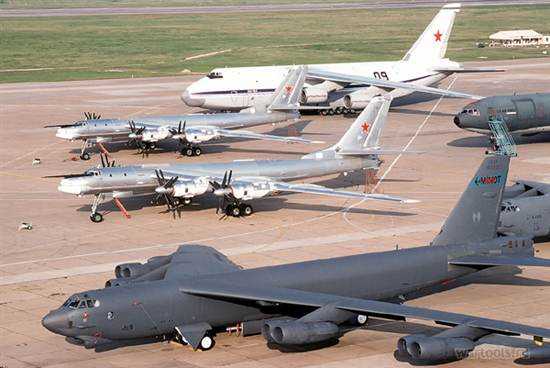 Ту-95 — советский и российский турбовинтовой стратегический бомбардировщик-ракетоносец, самый скоростной в мире самолёт с турбовинтовыми двигателями. Другие названия — проект «95», изделие «В», по кодификации НАТО: Bear — «Медведь». До настоящего времени «Медведь» — единственный в мире серийный бомбардировщик и ракетоносец с турбовинтовыми двигателями. Он являлся советским символом обеспечения военно-стратегического паритета в холодной войне. Он остаётся на службе как носитель крылатых ракет, благодаря более низкому расходу топлива, чем у реактивных самолётов. Обладает большой скрытностью от спутников SBIRS, способных наблюдать за крупными стратегическими бомбардировщиками с реактивными двигателями по выхлопам из последних.