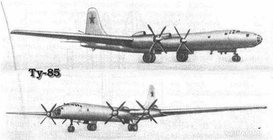 Первой попыткой создать в СССР межконтинентальный бомбардировщик была глубокая модернизация Ту-4. «Самолет 80» (его первый полет состоялся 1 декабря 1949 года) преодолел расстояние 8000 км. Однако начавшаяся вскоре Корейская война убедительно показала бесперспективность развития дальних бомбардировщиков на основе поршневых двигателей: реактивные истребители оставляли ей все меньше шансов прорваться к охраняемым объектам. Именно поэтому, несмотря на возможность достижения дальности более 12000 км, были прекращены дальнейшие работы над следующим советским стратегическим бомбардировщиком — Ту-85. В качестве новой модели такой машины предполагалось создать бомбардировщик с максимальной скоростью порядка 900-950 км/ч, грузоподъемностью до 20 т, дальностью полета до 14-15 тыс. км и высотой полета 13-14 тыс. м.