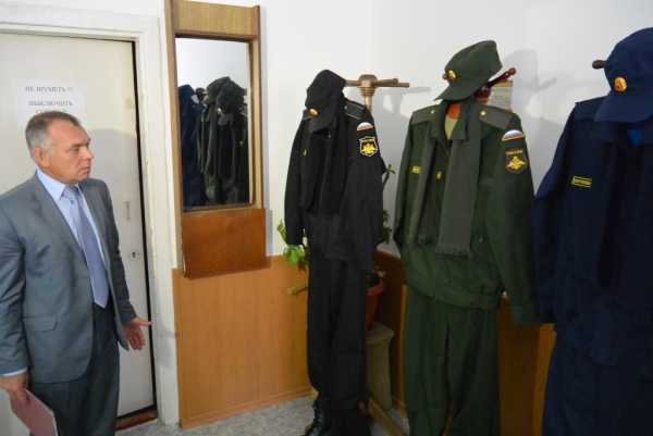 Врио военкома показывает новую одежду призывников. Фото: Константин Васильев, РИА PrimaMedia