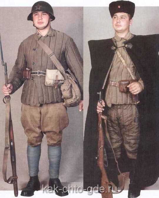 Согласно этим нормам, обмундирование, которое предстояло накопить к началу мобилизационного развертывания армии, слагалось из: пилотки цвета хаки (зимой — шапка-ушанка образца 1940 г. до 40 г. да и зимой 41 г. в связи с нехваткой шапок-ушанок, часто солдаты красной армии были обмундированы в будёновку), гимнастерки с шароварами цвета хаки (рядовому составу зимой и летом — гимнастерка только хлопчатобумажная) и однобортной темно-серой шинели с застежкой на крючках.