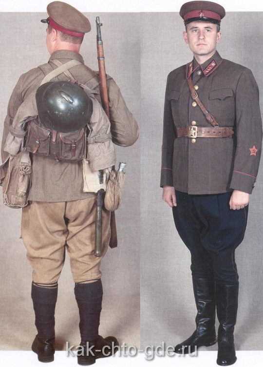 А когда в стране началась гражданская война, новая власть стала заботиться о том, чтобы форма одежды в РККА отличалась от обмундирования белогвардейских формирований. Так появились суконный шлем (прозванный буденовкой), который, кстати, остался на складах от Временного правительства.