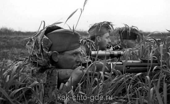 Разведчик в летнем камуфляже и снайпер в осеннем камуфляже