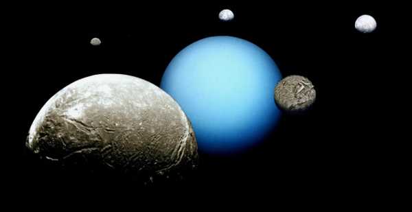 Так виглядають супутники Урану в порівнянні з самою планетою.
