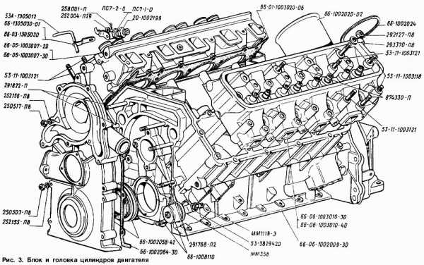 Блок цилиндров и головка блока двигателя ГАЗ-53