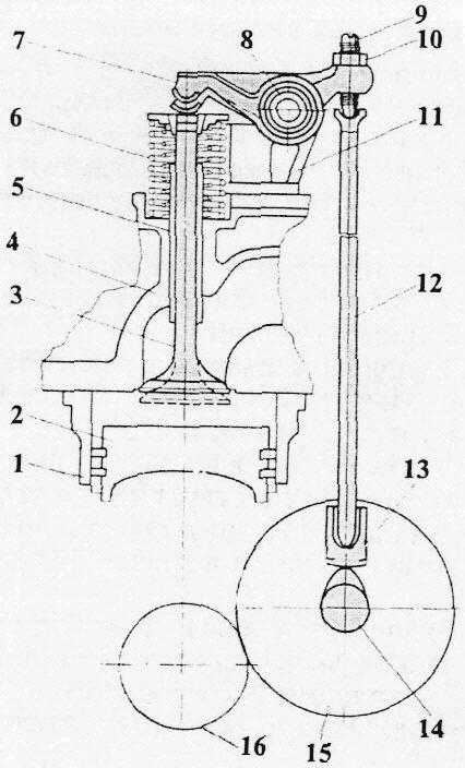 Оси коромысел собирают таким образом, чтобы отверстия под шпильки крепления в оси и стойках были смещены в противоположную сторону от регулировочных болтов коромысел.