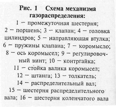 При зацеплении шестерен газораспределения зуб шестерни коленчатого вала с меткой <О> должен войтb во впадину зубьев шестерни распределительного вала, отмеченную риской. Шестерни заменять комплектно, так как их подбирают на заводе по боковому зазору и по шуму при работе. Боковой зазор в зацеплении должен быть в пределах 0,03—0,08 мм.