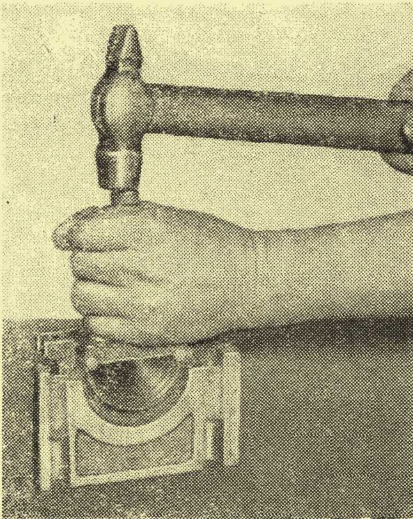 При помощи приспособления шнур опрессовывают в своих гнездах легкими ударами молотка, как указано на рис. 4.
