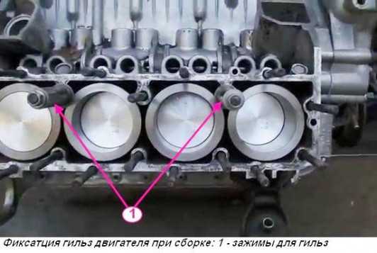После установки в блок цилиндров гильзы закрепляют втулками-зажимами (см. рис. 3).
