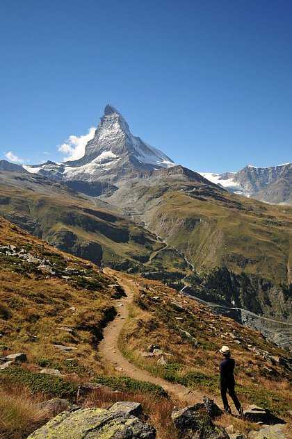 Маттерхорн является примером постоянного горообразования (на горе можно отследить различные слои пород, относящиеся к различным геологическим эпохам)Около 12 000 лет назад климат в Северном полушарии планеты потеплел, и ледники, сковывавшие Европу, отступили к северу. В Альпийском регионе появились первобытные племена, вероятно, прибывшие из Малой Азии. Южане искали пути для перехода в плодородные долины и изобилующие дичью леса по ту сторону гор. В итальянской провинции Ломбардия, в районе долины Валь-Камоника, что в Центральных Альпах, разведаны горные пещеры, на стенах которых сохранилось около 300 000 рисунков возрастом от 13 000 лет до н. э. Рисунки и таинственные знаки наносились на стены подземных убежищ и в античные времена, и в средневековые столетия. Эта пещерная живопись внесена в реестры Всемирного наследия ЮНЕСКО, а территория получила статус археологического парка.