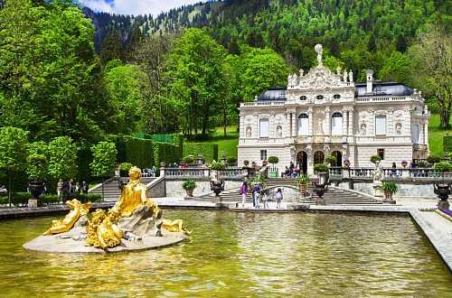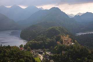На нижних склонах Баварских Альп расположен город-курорт Фюссен – центр зимних видов спорта. В 5 км от него находится замок Нойшванштайн – самый знаменитый из дворцов Людвига II, которого называли «сумасшедшим королем». На некотором удалении от Нойшванштайна высится Линдерхоф, второй из «сказочных» замков, скопированный с версальского дворца Малый Трианон. Линдерхоф расположен на территории горного заповедника Аммергебирге. По его территории проложены специальные маршруты для любителей пеших прогулок. Здесь находится красивое озеро Форггензе и другие живописные водоемы, величественная гора Брандершрофен (1880 м). С ее вершины открываются великолепные панорамы Баварских Альп. Сюда съезжаются экстремалы-парашютисты, для которых обустроена специальная площадка для разбега перед прыжком.