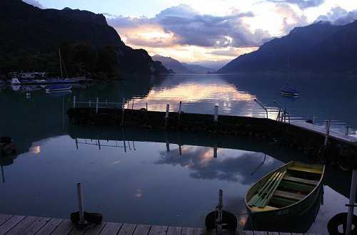 Бриенцское озероОт Интерлакена пролегает один из туристических маршрутов по Швейцарским Альпам, включающий в себя высокогорные курорты Венген, Кляйне-Шайдегг, ледник Эйгер, перевал Юнгфрауйох, расположенный на высоте 3454 м. Оборудование горнолыжных курортов поражает воображение. Лыжные трассы невероятно длинные, только в районе Юнгфрауйоха – не менее 40 подъемников: кресельных «канаток», фуникулеров, подвесных вагончиков. «Путешествие к небесам» можно продолжить по самой высоко расположенной в Европе железной дороге, чтобы добраться до крупнейшего в Альпах Алечского ледника.