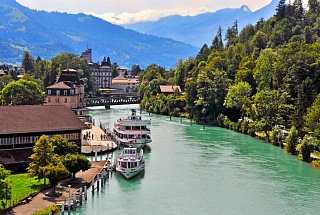 Недалеко от Гштада расположены озера-двойняшки Тунское и Бриенцское. На узком перешейке, соединяющем водоемы, находится город Интерлакен, сердце Бернского Оберланда. Он раскинулся у подножия трех гор, вздымающихся к небесам на четыре километра. Днем на фоне густой синевы неба их пики блестят, словно серые жемчужины, а в лучах заходящего солнца переливаются всеми оттенками розового и красного.