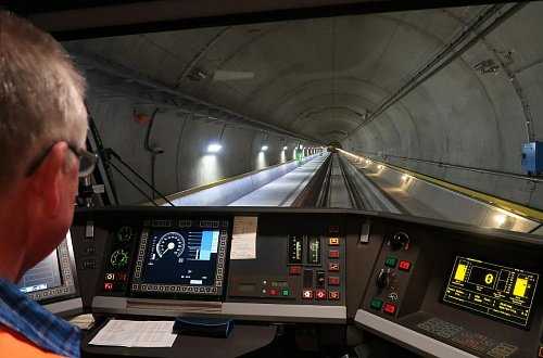 Въезд в Мон-Сенисский тоннель с итальянской стороныВплоть до XIX века ни один из этих проходов, за исключением Коль-ди-Тенде, Бреннера и Арльберга, не был приспособлен к езде; приходилось у подошвы горы разбирать экипаж, перевозить части его на вьючных животных, на противоположной стороне горы вновь его собирать. Первый толчок развитию сети проездных альпийских дорог дали итальянские походы Наполеона I, по приказанию которого построены были дороги через Симплон (1800—6 г.), Мон-Женевр (1802 г.) и Мон-Сени (1803—10 г.). Чтобы не дать себя отрезать этими дорогами от сношений с Италией, итальянцы, австрийцы, а также средние и восточные кантоны Швейцарии построили проездные дороги, мало-помалу вытеснившие старые вьючные дороги. Затем через Альпы были построены железные дороги, для чего потребовалось построить тоннели, первым из которых стал Мон-Сенисский туннель, построенный в 1871 году. В 1906 г. был построен Симплонский тоннель, который был самым длинным тоннелем в мире более полувека. В 2011 г. было завершено строительство Готтардского базисного тоннеля, который стал самым длинным железнодорожным тоннелем в мире[20].