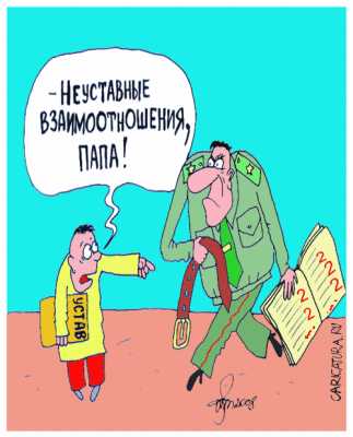 Сразу хочу заметить,что это не РЕКОМЕНДАЦИИ,как ДОЛЖНО быть,а РАЗМЫШЛЕНИЯ на тему… Мысли выскажу спорные( в том числе и для меня самого),и буду благодарен за комментарии, особенно взвешенные и не переполненные эмоциями!Итак,о «дедовщине » в армии. Наверное, надо сначала определить, а что ИМЕННО скрывается за этим термином: «дедовщина»? Политкорректное название «неуставные отношения» по-моему, только запутывает вопрос! Моё мнение такое: если (не дай Бог!) армия попытается действовать СТРОГО по букве уставов, она окажется не только деморализванной, как сейчас, но ПОЛНОСТЬЮ парализованной: какие-либо отношения между солдатами и между солдатами и офицерами станут попросту невозможными! Представьте на минуту,что ВСЕ и ВСЕГДА в армии подходят друг у другу строевым шагом! Отдают друг другу честь, обращаютчся только по званию…