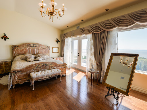 В этих стенах 6 кроватей и 7 ванн, достаточно места для г.Деннис, его давняя жена Марта Деннис и их четыре дочери. Главная спальня наверху вызывает драму со всем этим стеклом в спальне — мистер Деннис, должно быть, чувствует, что парит над мерцающими огнями города.