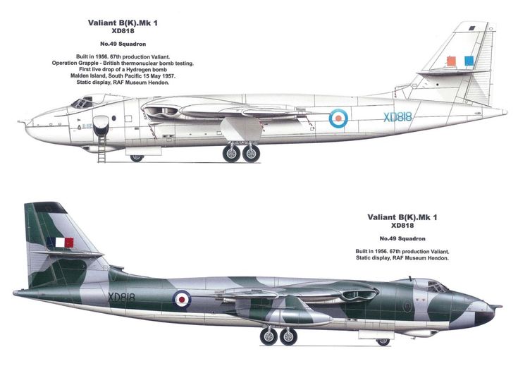 через Aeropedia Самолет поступил на вооружение в 1955 году и быстро стал чем-то вроде знаменитости. Valiant станет единственным V-бомбардировщиком, сбросившим боевое ядерное оружие, включая сброс первой британской боевой термоядерной водородной бомбы, которая была сброшена у берегов острова Рождества в мае 1957 года.