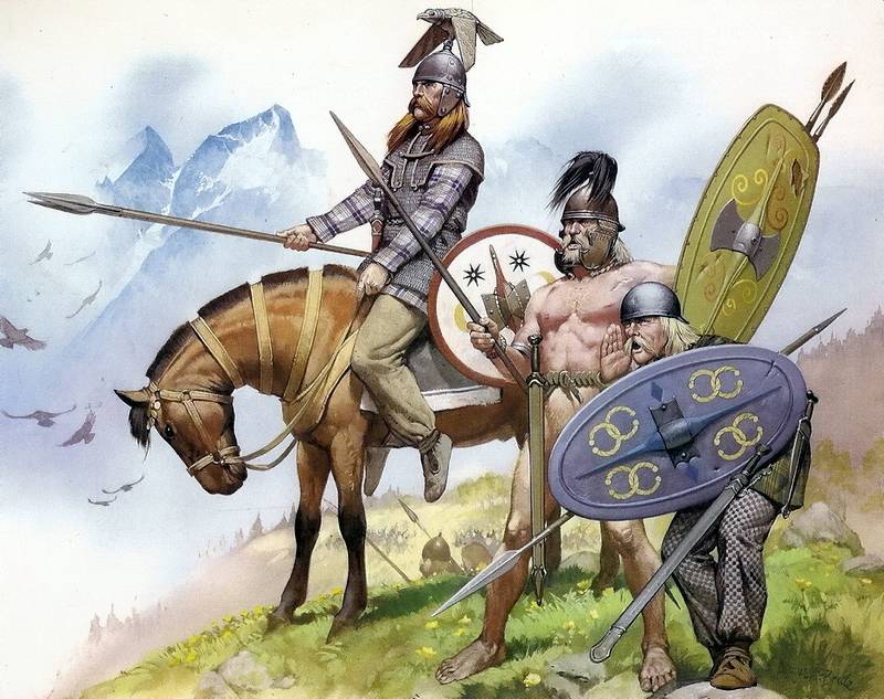 Цезарь был первым, хотя и не последним римским автором, который называл германцев полными дикарями – feri. Галлов можно было цивилизовать контактом с Римом, а германцы оставались feri. Цезарь особо подчеркивает различия между галлами и германцами. Он представляет Рейн как великую границу между Галлией и Германией, признавая при этом, впрочем, что в былые времена некоторые племена переправлялись через Рейн из Германии и селились в северной Галлии. То, на чем Цезарь так настаивал, – что Рейн является четкой границей между кельтскими и германскими народами, теперь считается пропагандистской выдумкой Цезаря. Народы, которые жили к востоку от среднего Рейна, никак нельзя было назвать ни чистокровными кельтами, ни чистокровными германцами, хотя их материальная культура была в большей степени кельтской, чем германской. К этому мы еще вернемся.