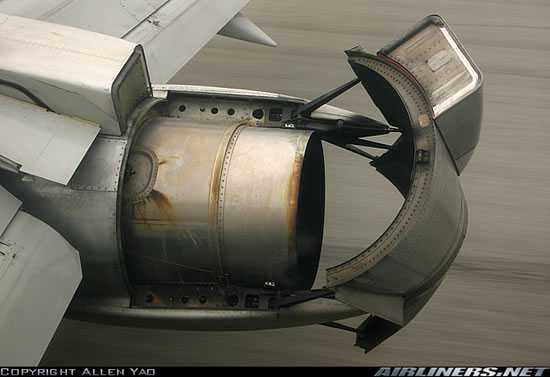 “Манипуляции” с вектором тяги служат для создания дополнительных управляющих сил. Например, на многих гражданских авиалайнерах двигатели оборудованы реверсивным устройством, которое используют обычно для торможения самолёта во время посадки. Реверсивное устройство управляет вектором тяги двигателя, “обращая” этот вектор относительно его направления в крейсерском режиме работы двигателя. Есть разные технические решения, включающие в себя отклоняемые элементы. Пример – на фото: