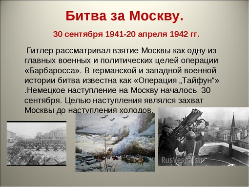 09.1941-20.04.1942) 7 НОЯБРЯ — ДЕНЬ ВОИНСКОЙ СЛАВЫ РОССИИ5 ДЕКАБРЯ — ДЕНЬ ВОИНСКОЙ СЛАВЫ РОССИИ