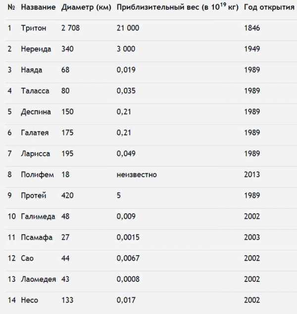 Планета, название которой созвучно с именем великого бога морей, была обнаружена в 1846 году. Она стала первой, которую нашли при помощи математических расчетов, а не благодаря наблюдениям. Постепенно у неё открывали новые спутники, пока не насчитали 14.