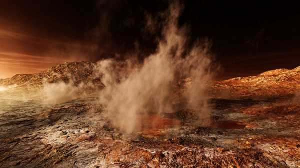 19. Место посадки робокара-марсохода Spirit. Так выглядел Гусева в ноачианскую эпоху. Еще одна конце6птуальная работа, где присутствует больше воды и фумарол.