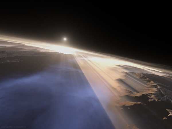 Локальная пылевая буря на северном полюса Марса в апреле 2018 г. Источник: ESA/DLR/FU BerlinРассвет на Марсе: фото марсохода