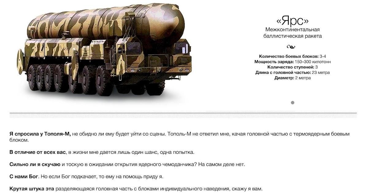 Ракета РС-24 ЯрсК сожалению, точных характеристик этой межконтинентальной баллистической ракеты Минобороны РФ не разглашает, однако российские СМИ отмечают, что РС-24 предназначена для поражения стратегических целей на дальности до 11 тыс. км.