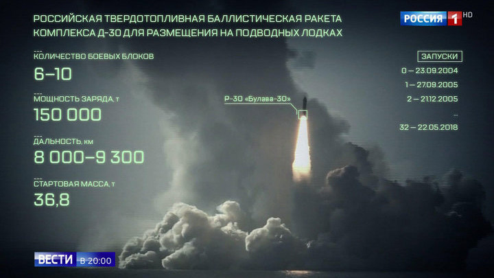 Булава-30Межконтинентальная баллистическая ракета (МБР) морского базирования Р30 3М30 – новая российская трехступенчатая твердотопливная ракета, размещаемая на подводных лодках.