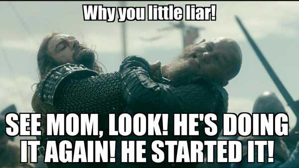 Ролло и Рагнар выясняют отношения: «Ах ты маленький врун! Мам, смотри, видишь? Он опять! Он первый начал!» Источник.