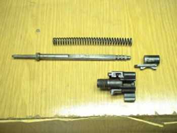 Затвор прост по устройству, разбирается и собирается без инструментов. При неполной разборке оружия необходимо отвести в сторону затворную защелку, находящуюся с левой стороны ствольной коробки, и вынуть затвор. Затем флажок предохранителя поставить в среднее положение и, утопив кнопку-фиксатор на соединительной муфте, отвернуть ударник в сборе с предохранителем от стебля затвора. После чего упереть ударник бойком в шайбу – люверс, которая специально для этих целей размещена на прикладе винтовки, сжать боевую пружину, сильно надавив на предохранитель и флажок, затем повернуть фиксатор ударника на 90 градусов и отделить его от ударника. С ударника снять предохранитель и боевую пружину. Отделить флажок от предохранителя.