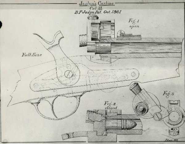 Б.Ф. Джослин сконструировал свой казнозарядный карабин .54 калибра еще в 1855 году. В 1857 году американская армия испытала 50 его карабинов, однако в то время принимать их на вооружение военные отказались из-за общего предубеждения в отношении казнозарядного оружия. Но в 1858 году ВМФ САСШ все же заказал Джослину 500 карабинов его конструкции (.58 калибра – 14,7-мм). По ряду причин Джослин в 1861 году сумел изготовить всего 200 штук. В 1861 году он переделал свой карабин под металлический патрон кольцевого воспламенения и получил заказ от Федерального департамента артиллерии на 860 таких карабинов, который был выполнен в следующем, 1862 году. В боях Гражданской войны карабин показал себя хорошо, что привело к тому, что в этом же году Джослину заказали уже 20 тысяч таких карабинов. Поставки армии САСШ начались в 1863 году, хотя до ее окончания она получила лишь половину заказанных «Джослинов». Кстати, именно ружья системы «Спрингфилд-Джослин» стали первым в Америке по-настоящему массовым «передельным оружием». Причина заключалась в том, что они имели очень простой крановый затвор и стреляли распространенными унитарными патронами калибра .56 с круговым воспламенением.