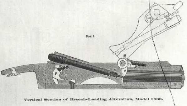Схема устройства винтовки Роупера по патенту 1866 г.