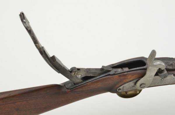 Карабин У.Эванса. Отверстие для выброса гильз пока еще открыто. Позднее его закрыли специальной крышкой, похожей на курок, и открывавшейся после каждого выстрела. Благодаря этому грязь внутри практически не попадала!