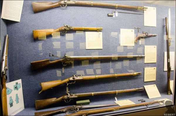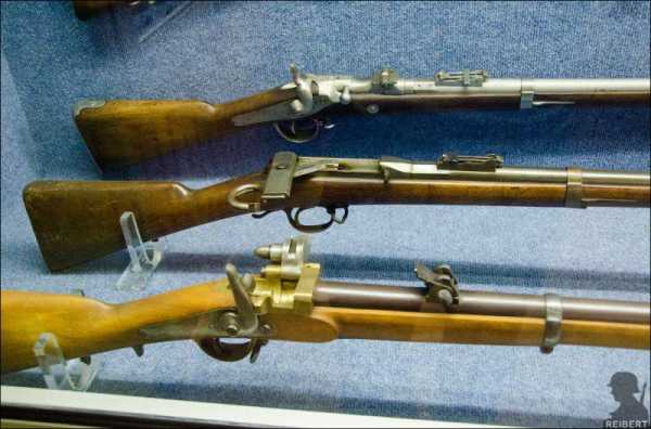36. Капсюльные ружья, сверху вниз: американский карабин М1862 системы Джослима, карабин М1863 системы Шарпса-Лоуренса, и пехотная винтовка М1848/65 системы Снидера для армии Дании.