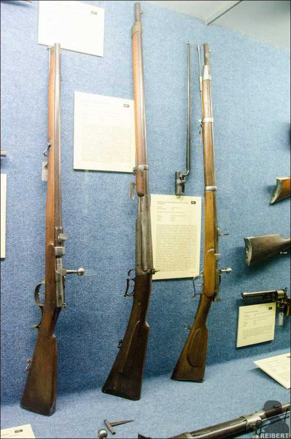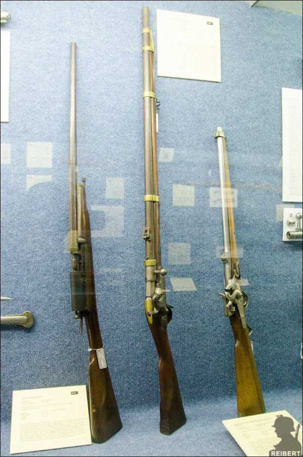 12. Образцы казнозарядных винтовок, слева направо: немецкая системы Пилона (1853), США (1864) и саксонский кавалерийский карабин М1865.