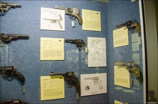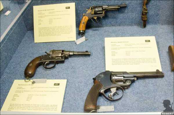 33. В левом ряду сверху вниз: французский револьвер М1873 системы Шамело-Дельвинь, револьвер для русской армии системы Смитт-Вессен (кстати, он производился в Германии), револьвер М1878 системы Маузера «Зиг-Заг» и немецкий армейский револьвер М1879.