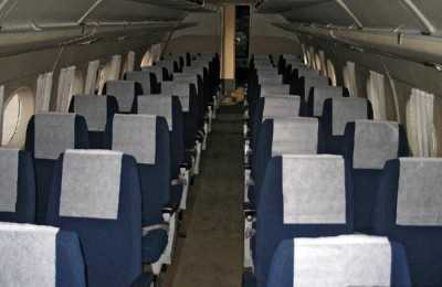 - В некоторых самолетах серии, первые кресла (по типу железнодорожного транспорта) обращены спинкой вперед, и между ними и следующим рядом расположен столик.
