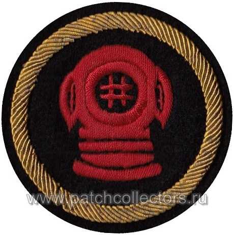Пподводная лодка , надпись, лавровая ветвь — золотистого цвета.