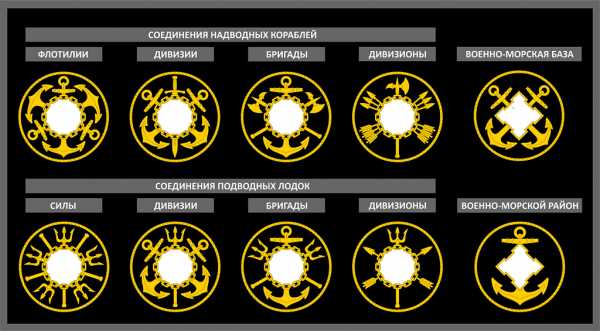 Что касается нашивок ВМФ на правый рукав, то они весьма разнообразны. Однако есть единая концепция, которой они подчиняются. В центре нашивки — индивидуальный герб, но вокруг это герба идут стандартные элементы, которые говорят о месте подразделения в морской иерархии.