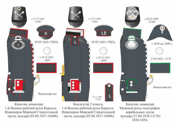 В созданных автором таблицах продемонстрированы в том числе форма и знаки различия морских инженеров Российского Императорского Флота с 1837 по 1917 гг.